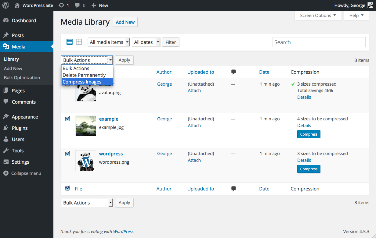 We wtyczce możesz zoptymalizować wszystkie obrazki “hurtem” lub kompresować pojedynczo.