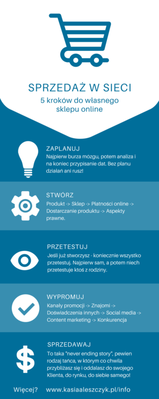Pamiętasz swój pierwszy zakup poczyniony w sieci? Ja doskonale pamiętam! Kupiłam głośniczki do komputera, które okazały się być… głośnikami do samochodu! Chciałam je zwrócić, ale sprzedawca powiedział: “trzeba było czytać opis głośniczków” (tak, to jeszcze było PRZED ustanowieniem prawa do zwrotów przy zakupach na odległość). Wylądowałam z przysłowiową ręką w nocniku… Wtedy nawet mi się nie śniło, że kiedyś będę mieć swój przynoszący dochody sklep internetowy, że będę sprzedawać własne ebooki, kursy online i – co więcej – uczyć innych, jak sprzedawać w sieci. Więc jeśli myślisz o swojej sprzedaży w sieci – koniecznie czytaj dalej!