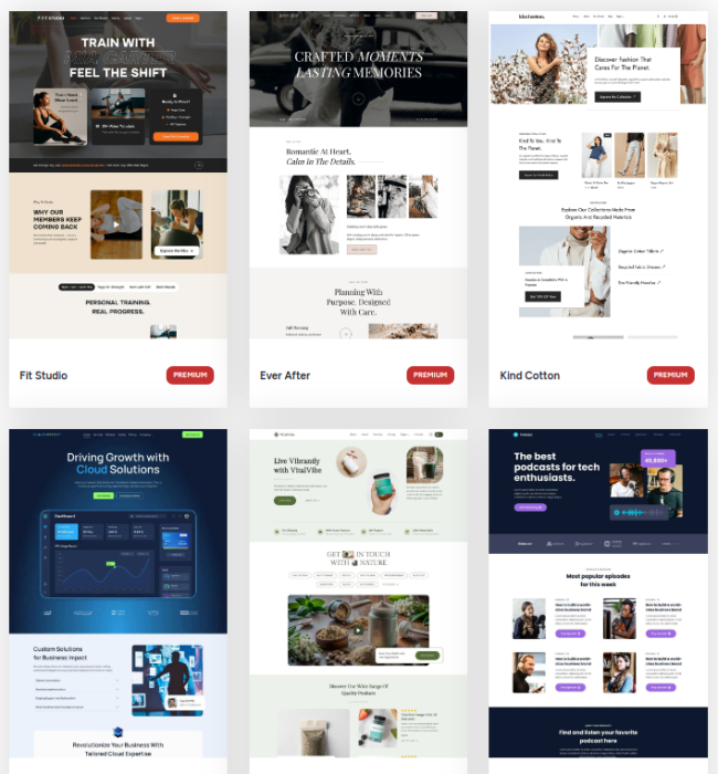 Zaawansowane bloki Pro i gotowe szablony pozwalają nietechnicznym użytkownikom tworzyć responsywne sklepy czy landy w minutach, zamiast dni spędzanych u dewelopera.